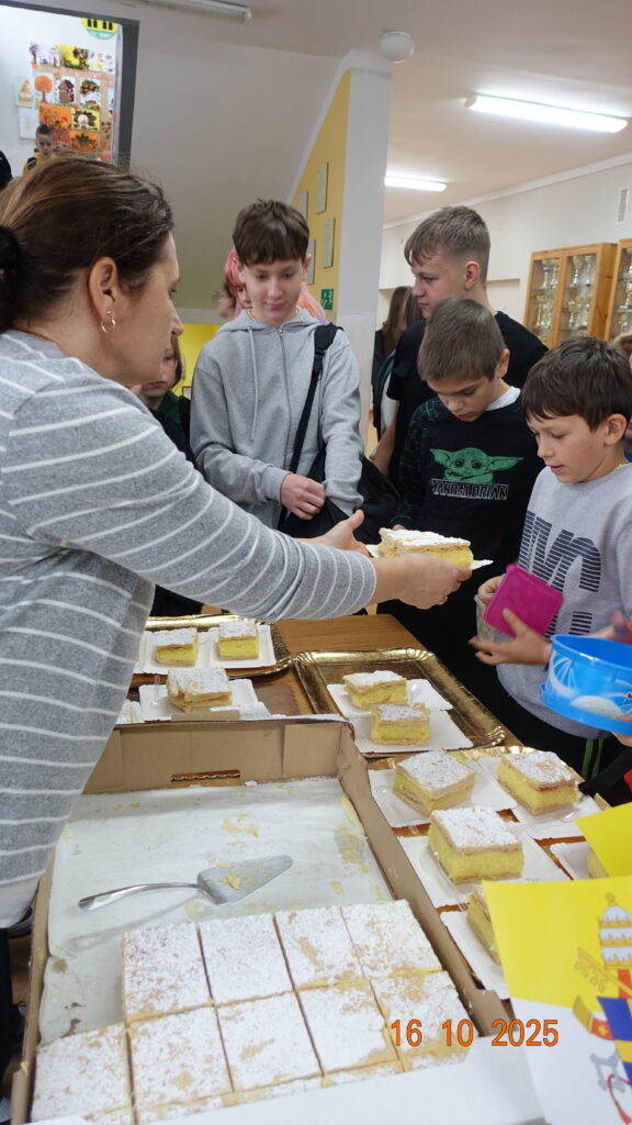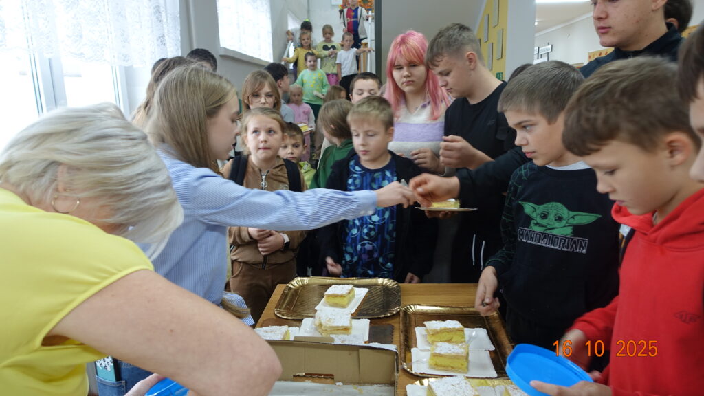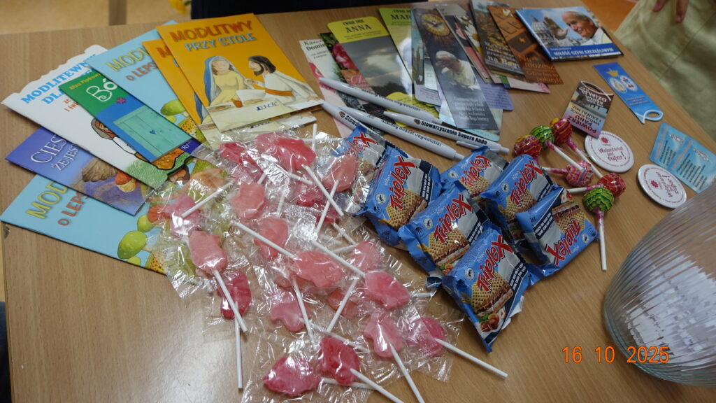 Tego dnia przyszliśmy ubrani na żółto, symbolizując papieskie barwy. Można też było spróbować pysznych papieskich kremówek, które cieszyły się dużym zainteresowaniem.