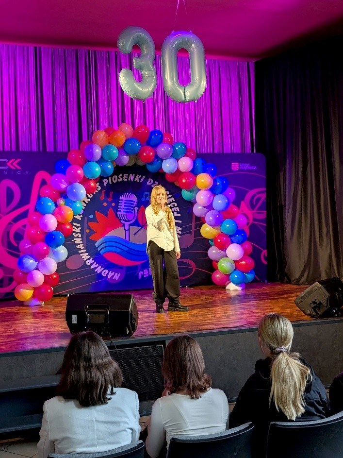 Konkurs jest wydarzeniem, który od ponad trzydziestu lat gromadzi młodych wokalistów z terenu gminy Piątnica oraz powiatu łomżyńskiego (z wyłączeniem miasta Łomża), dając im możliwość występu i zaprezentowania swoich wokalnych talentów. Naszą szkołę na tym konkursie reprezentowała Karolina Szypulska z klasy VIII i Gabriela Kleszczewska z klasy VII. Dla naszych uczennic występ był wyjątkowym przeżyciem. Karolina  zachwyciła jurorów piosenką Zbigniewa Wodeckiego „Nauczmy się żyć obok siebie”, co zaowocowało przyznaniem jej I miejsca w kategorii wiekowej klas VII- VIII. Karolinę czeka jeszcze występ podczas gali finałowej 23.10.2025 r. Obu uczennicom serdecznie gratulujemy i życzymy dalszego rozwijania swoich pasji i talentu.