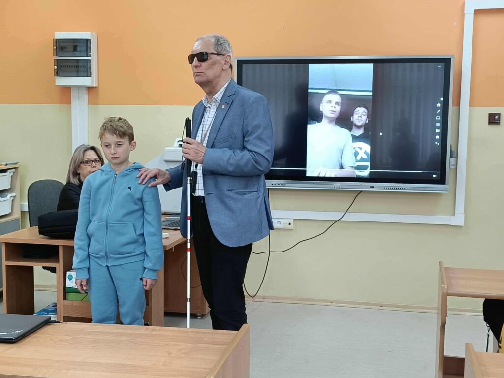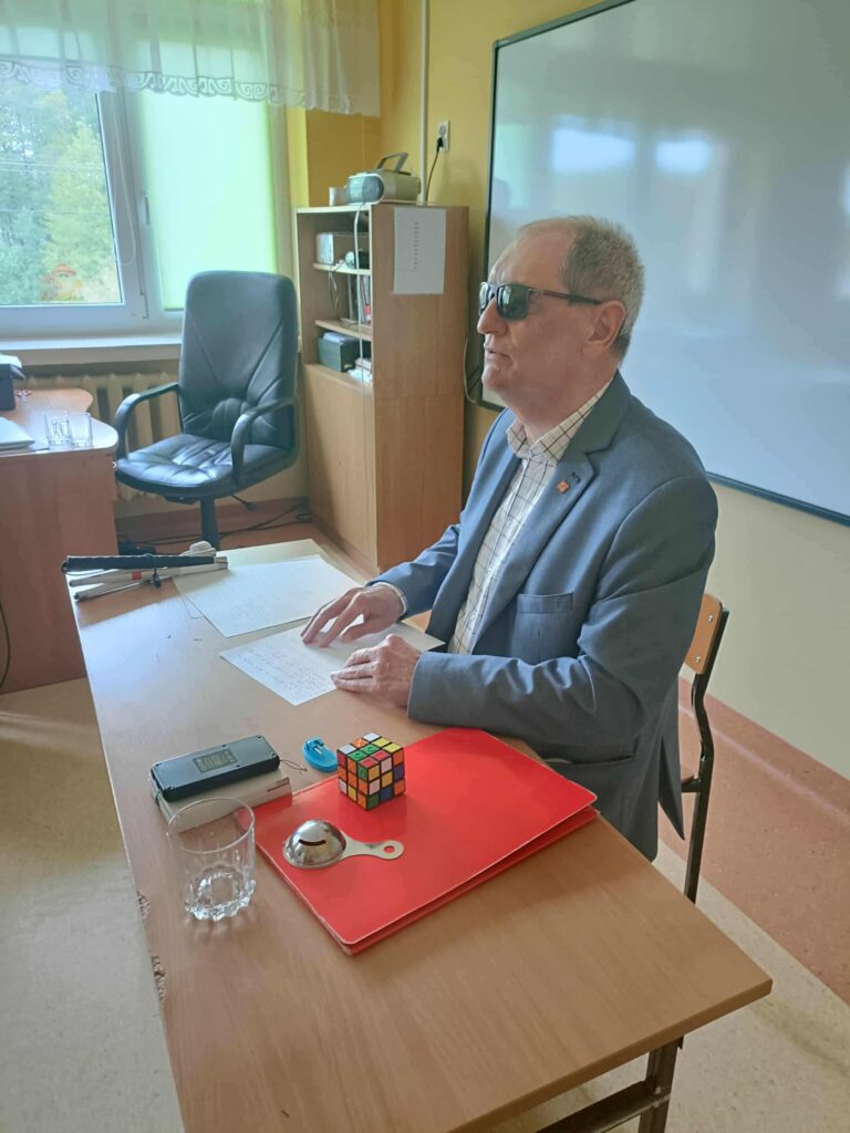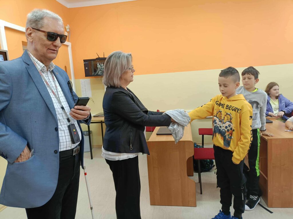 Najważniejszym punktem wydarzenia było spotkanie z panem Krzysztofem Szymanowskim, wiceprezesem Koła Polskiego Związku Niewidomych w Łomży.
