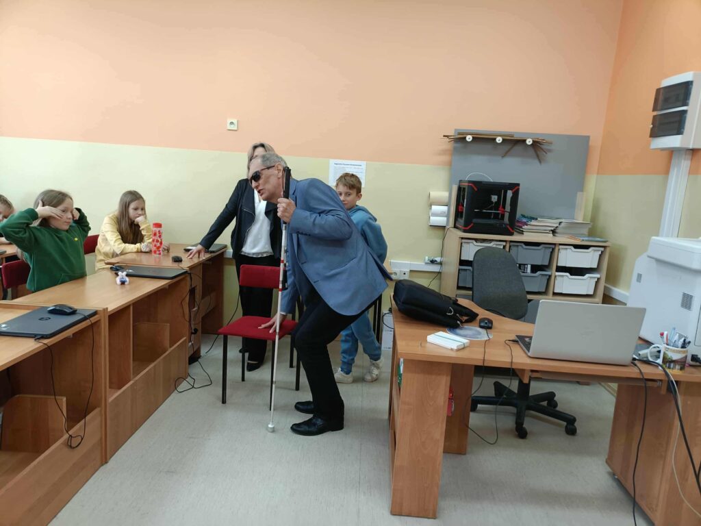 Uczniowie poznali alfabet Braille’a, obejrzeli filmy o życiu osób niewidomych – m.in. kanał Igora – a także przedstawienia „Skrzydła motyla” i „Star Wars”, przygotowane przez uczniów