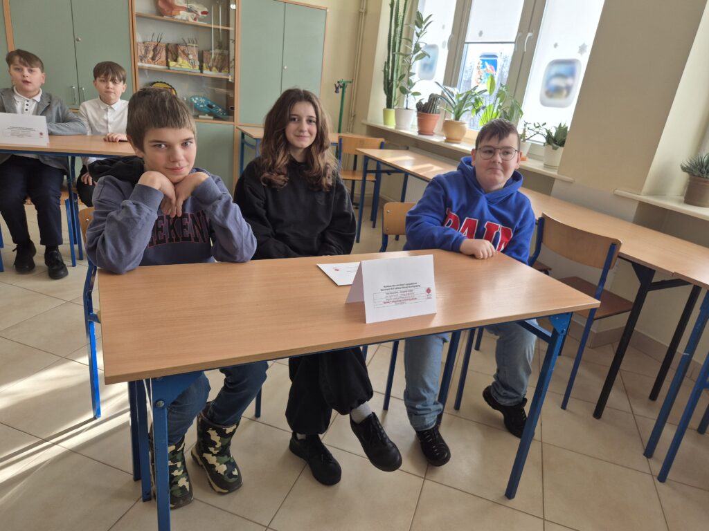 Do etapu diecezjalnego zakwalifikowało się sześcioro naszych uczniów. W kategorii klas 4–6 awans zdobyło troje uczniów z klasy 6: Aleksandra Tarnacka, Kuba Wiśniewski i Tomasz Borawski, natomiast w kategorii klas 7–8 – trzy uczennice z klasy 8: Ewelina Sikora, Julia Pieńkowska i Karolina Szypulska.